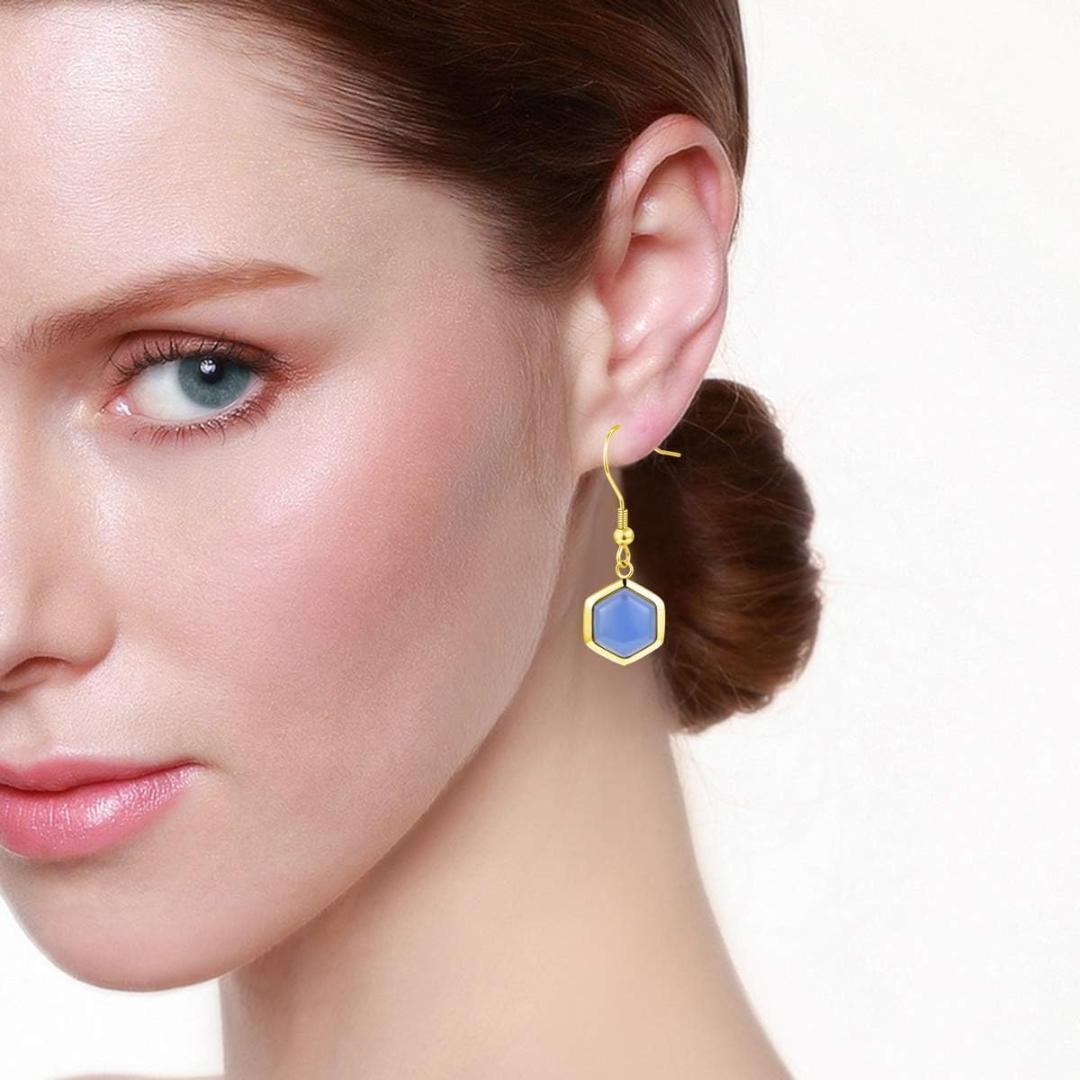 ❤高品質:高品質の316Lステンレス鋼素材と六角形の青い宝石を使用して、美しいイヤリングを作成します。 このイヤリングは色あせず、簡単に変形せず、人体に無害です。