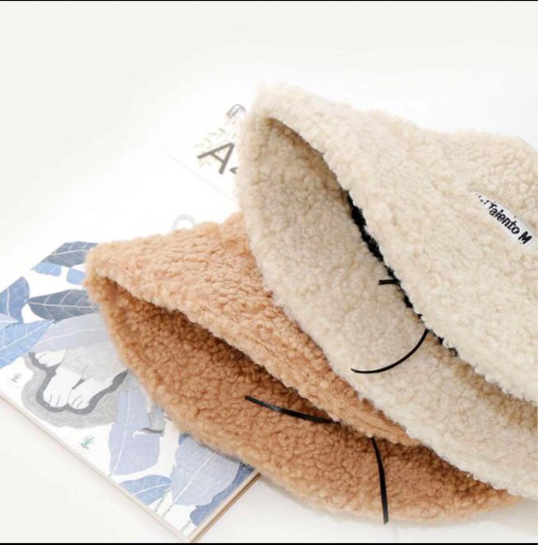 バケットハット ベージュ ボアハット 帽子 つば広帽子 もこもこ 無地
