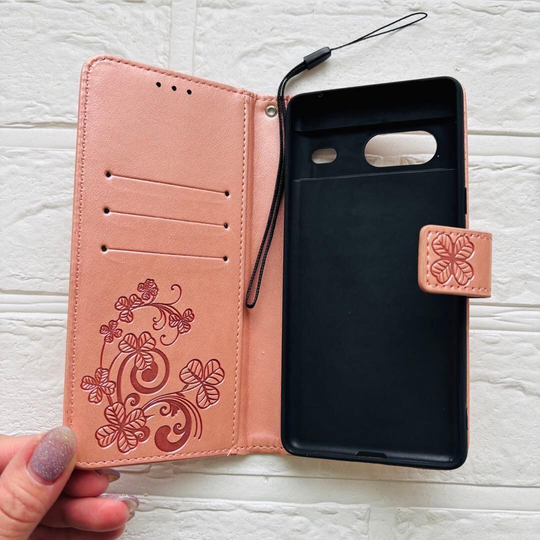 Google Pixel7 ケース 手帳型 花柄 ピクセル7 PUレザー ピンク
