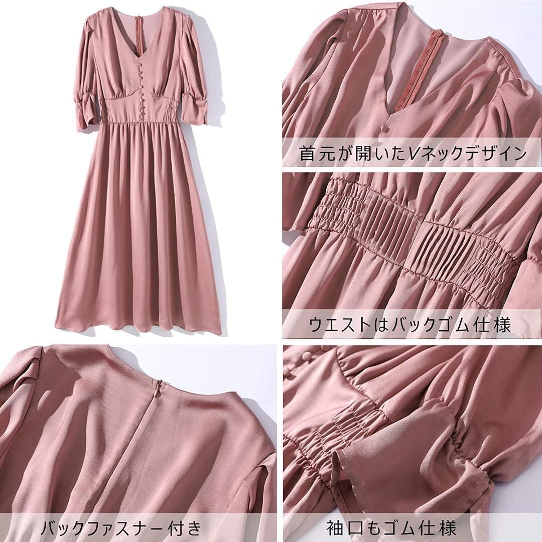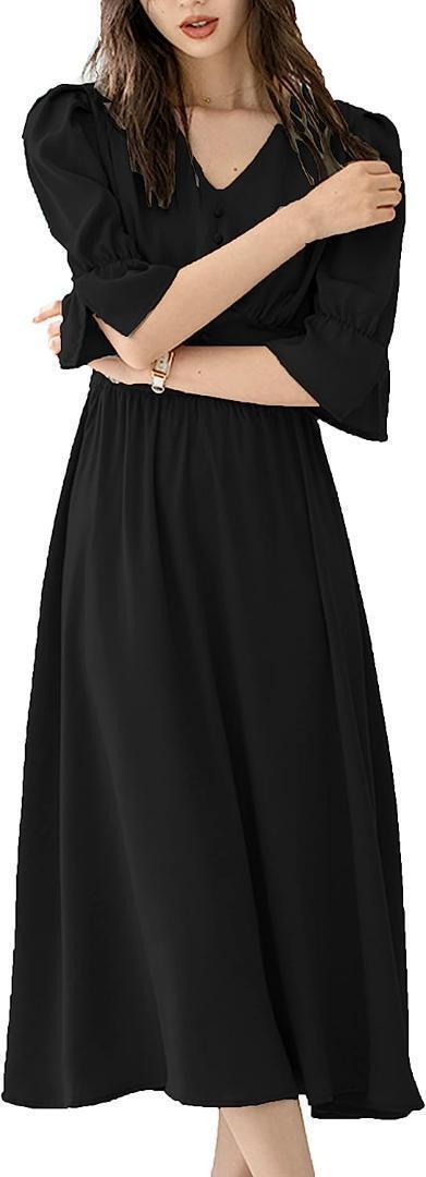 シフォンワンピース レディース 半袖 ロングワンピース ハイウエスト Aライン