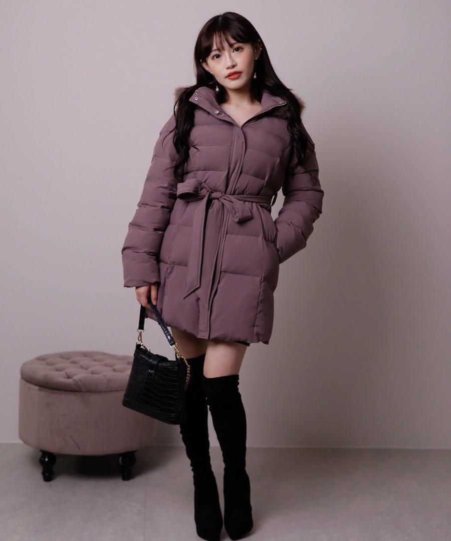 ふっくらとした中綿入りで防寒性も◎ウエストをきゅっと絞るベルト付きデザインで、メリハリのある美スタイルをメイクします。